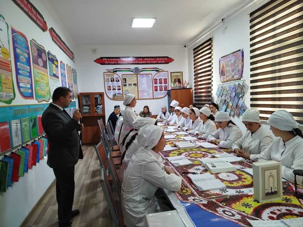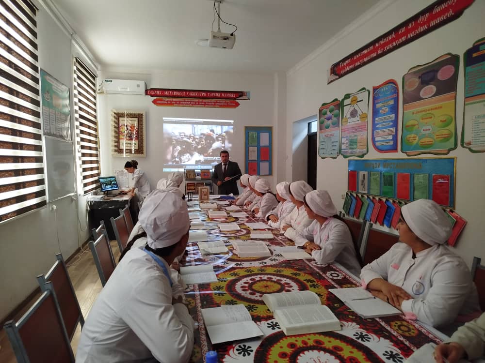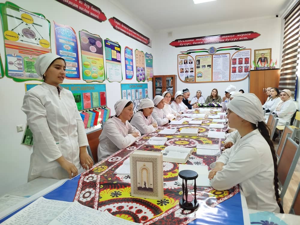 Дар дарси кушоду намунавӣ муовини директор оид ба таълим Нуруллоён С.А., сардори назорати сифати таҳсилот Набиева Н., мудири кафедра Давлатова С., сардори шуъбаи илмӣ-методӣ Абдураҳмонов К.Ҷ., муовини директор оид ба таҷрибаомӯзӣ Эмомова С. ва як қатор омӯзгорони ҷавон иштирок намуданд.