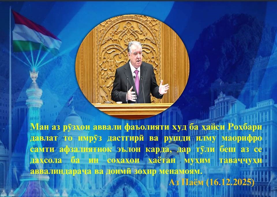 Президенти кишвар таъкид карданд, ки маориф меҳвари рушди миллат ва таҳкими пояҳои давлатдорӣ мебошад. Пешвои миллат ба масъалаҳои баланд бардоштани сифати таълим, таҳкими пойгоҳи моддию техникии муассисаҳои таълимӣ, баланд бардоштани мақоми омӯзгор ва тақвияти кадрҳои омӯзгорӣ таваҷҷуҳи хос зоҳир намуданд.