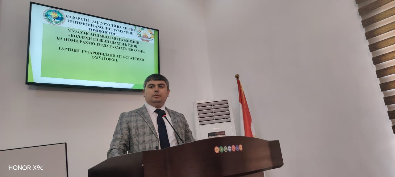 Аз санаи 15 то 24 январи соли 2026 дар Муассисаи давлатии таълимии «Коллеҷи тиббии шаҳри Кӯлоб ба номи Раҳмонзода Раҳматулло Азиз» барои мутахассисони ҷавон семинари омӯзишӣ баргузор гардид.